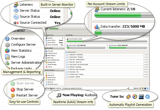 O CentovaCast é um painel de gestão de rádio streaming online de fácil interação.